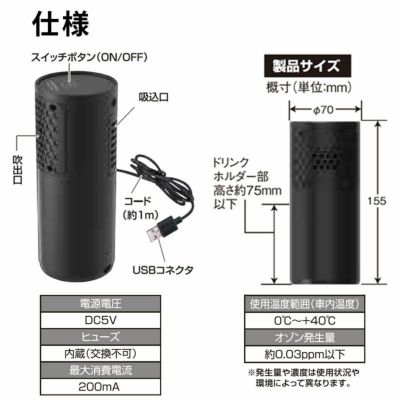 サイズ オゾナイザー:約155mm×約70mm(コード:約1m)