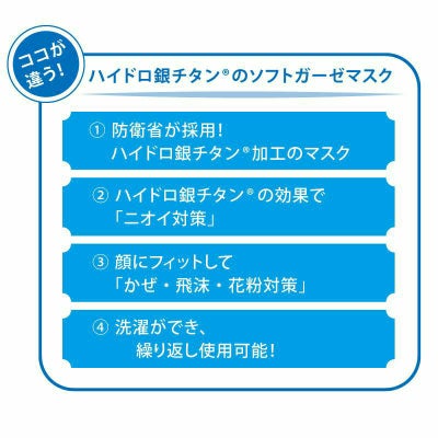 • ハイドロ銀チタン®の影響で時間経過によりマスクの色調が変化することがありますが、問題なくお使いいただけます。