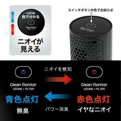 キレイなにおいは青色、嫌なにおいを感知すると赤色に点灯します。